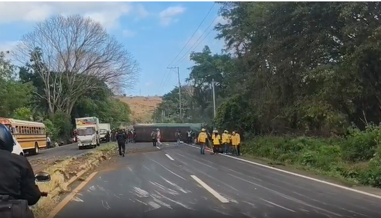 ACTUALIZACIÓN: Se mantienen habilitado carril reversible con dirección al Occidente por vuelco de bus en km. 39 de carretera a El Salvador CA-1 Oriente (Villa Canales, Guatemala).