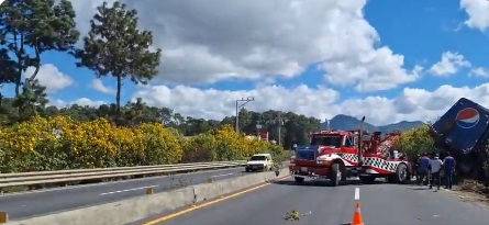 Maniobras de grúa interrumpen el tránsito en el km 56 del Libramiento de Chimaltenango