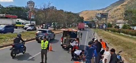 Provial atiende hecho de tránsito en el km 30 de ruta al Pacífico [CA-9 Sur], en Amatitlán, Guatemala. Una persona queda herida en el lugar al ser atropellada por una motocicleta. Obstruido el carril derecho hacia el sur.