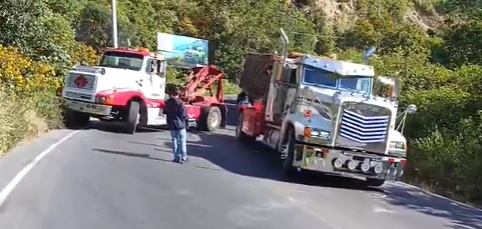 Provial atiende hecho de tránsito en el km 210 de la ruta CITO-180, en Zunil, Quetzaltenango. Salida de pista de tráiler obstruye el carril hacia el norte. Paso cerrado momentáneamente debido a maniobras de grúas.