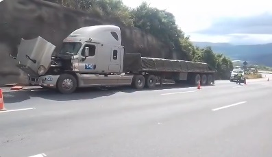 Brigadas de Provial en puesto de regulación vehicular por tráiler varado con desperfectos mecánicos en el km. 60 de ruta CA-1 Occidente (Libramiento de Chimaltenango). Obstruye carril derecho. ¡Precaución!
